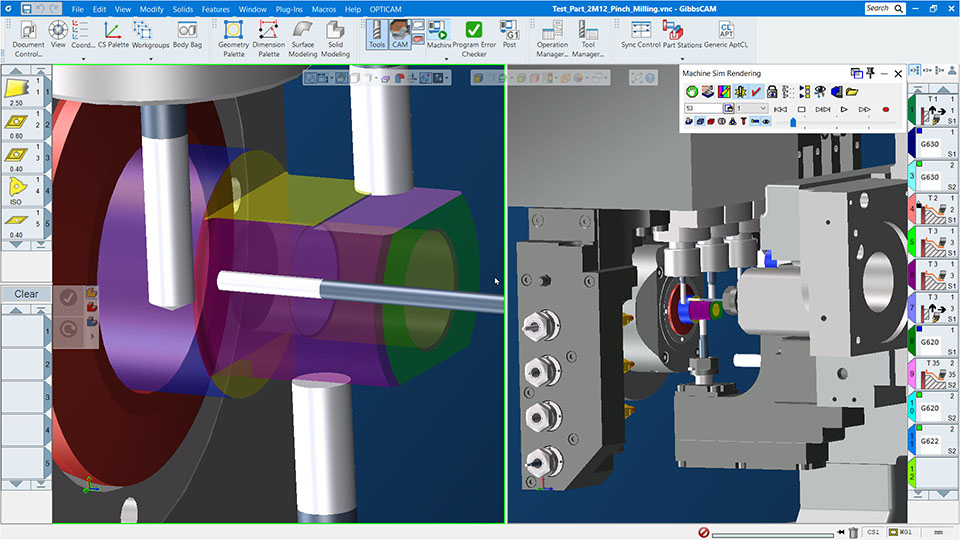 Manage multiple spindles, turrets, and tools with built-in synchronization tools that help coordinate complex machining operations and identify potential conflicts.